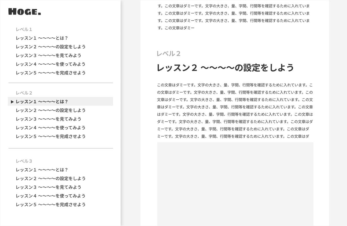 今回は目次の機能は省略し、ヘッダーにユーザの読んでいるセクションのタイトルを表示する、以下のような簡単なWebページを作成した時のコードについて書きたいと思います。